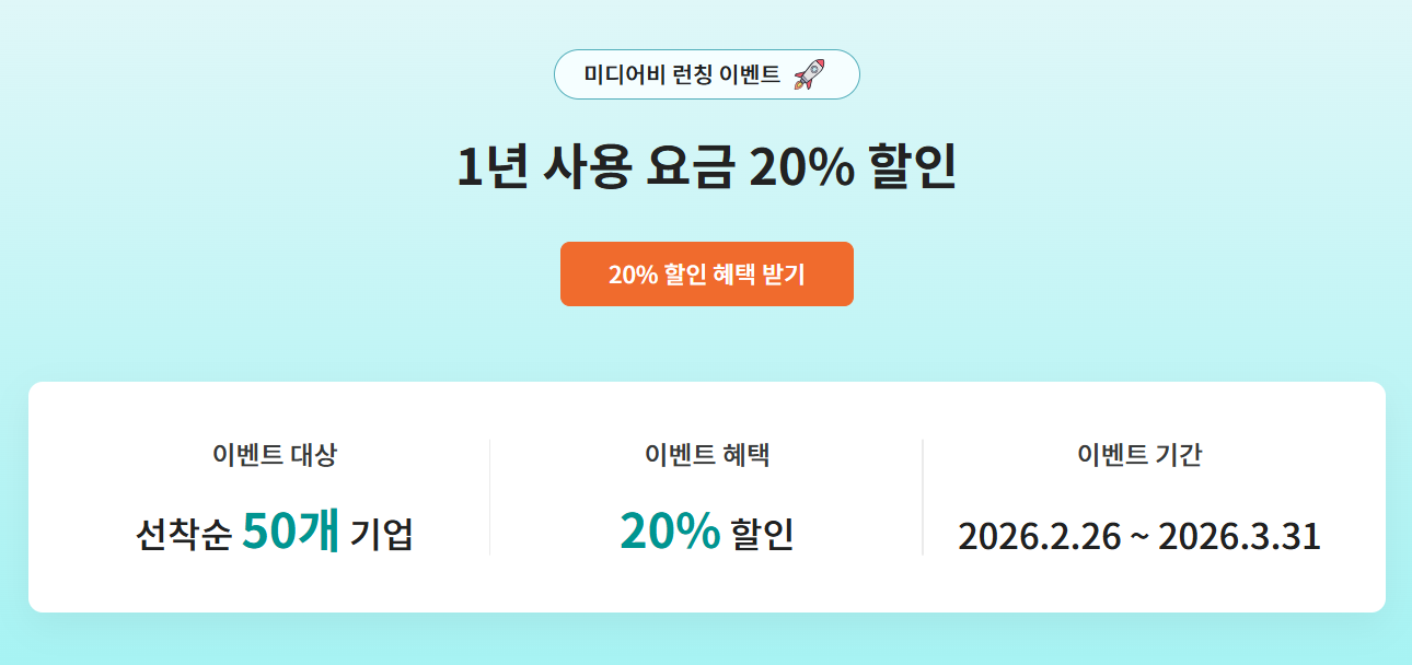 ‘미디어비(MediaBee)’ 런칭 20% 할인 이벤트